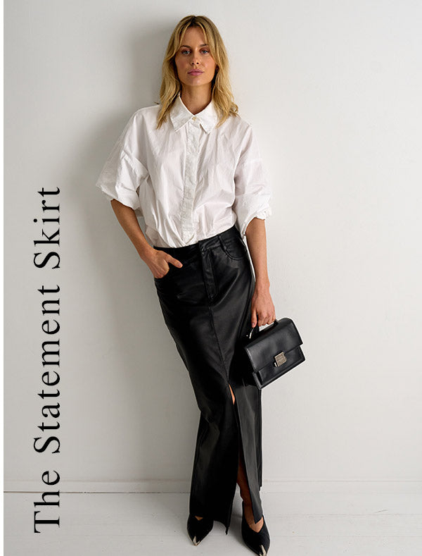 This pencil skirt strikes the perfect balance —polished enough for work (great length) yet versatile for play. The leather is beautifully soft, while the design details remain timelessly classy, with an edgy twist from the exposed zipper. A standout investment piece from West 14th!